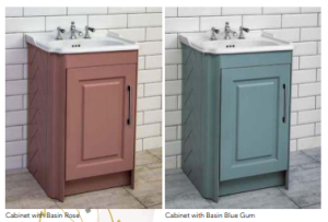 Colourful cabinets in playful pastel shades are functional and space-saving, allowing you to combine a traditional basin with bright furniture for a 2-in-1 piece.