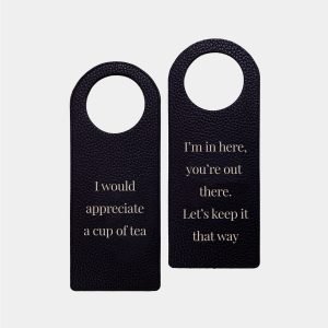 CLG London create bespoke leather hanging door signs, a beautifully crafted product that hangs neatly to fit your door handle. The style, shape and message can be re-designed to fit in with your brand’s culture. Messages can be embossed on the front and back providing a dual use product, other options for embossing could be: