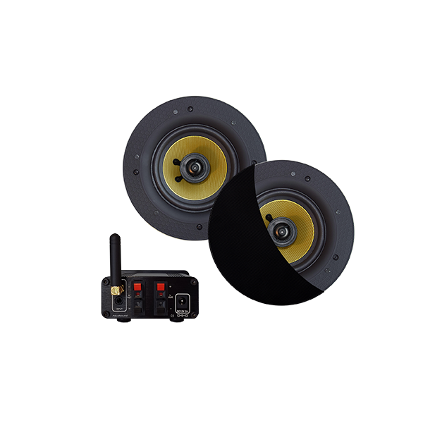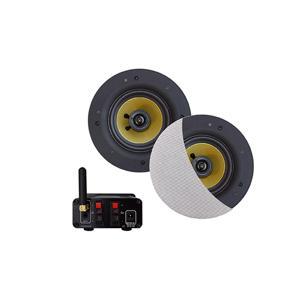 This In-Room audioset consists of 1 amplifier and 2 ceiling loudspeakers. Place the speakers in the ceiling. The amplifier can be hidden behind the speaker. The speakers are available in white and black, but also in 6 diferent 'Mood' colors to match the rooms accesories.