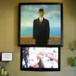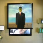 Using artwork to hide and expose a wall mounted or wall recessed TV.