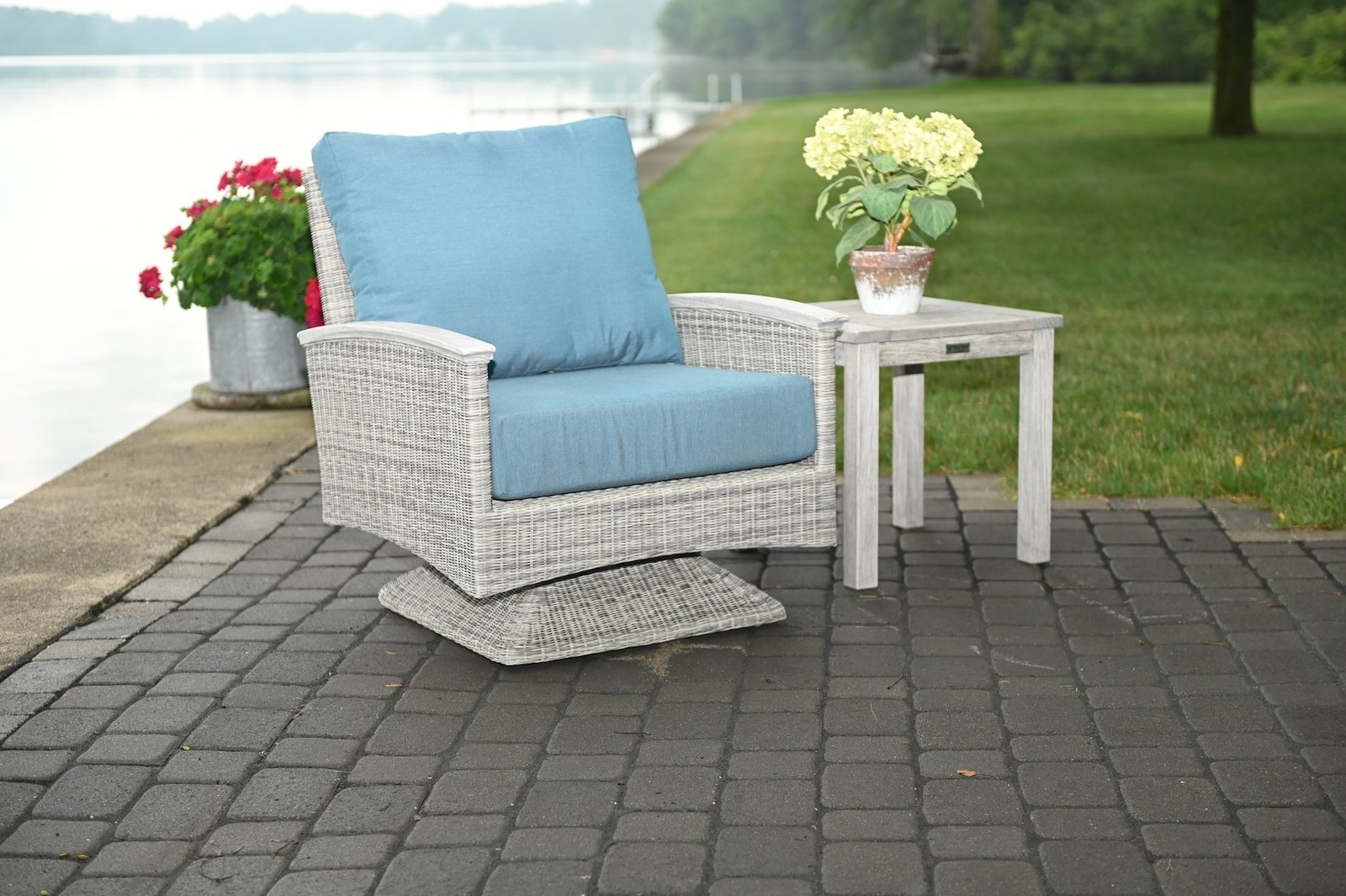 Blending deep seating comfort with smooth, gentle motion, the Bella Swivel Rocker is designed for effortless outdoor relaxation. The plush cushions and durable wicker frame create a supportive seat, while the swivel and rocking features add an extra level of comfort for lounging on patios, decks, or covered porches.