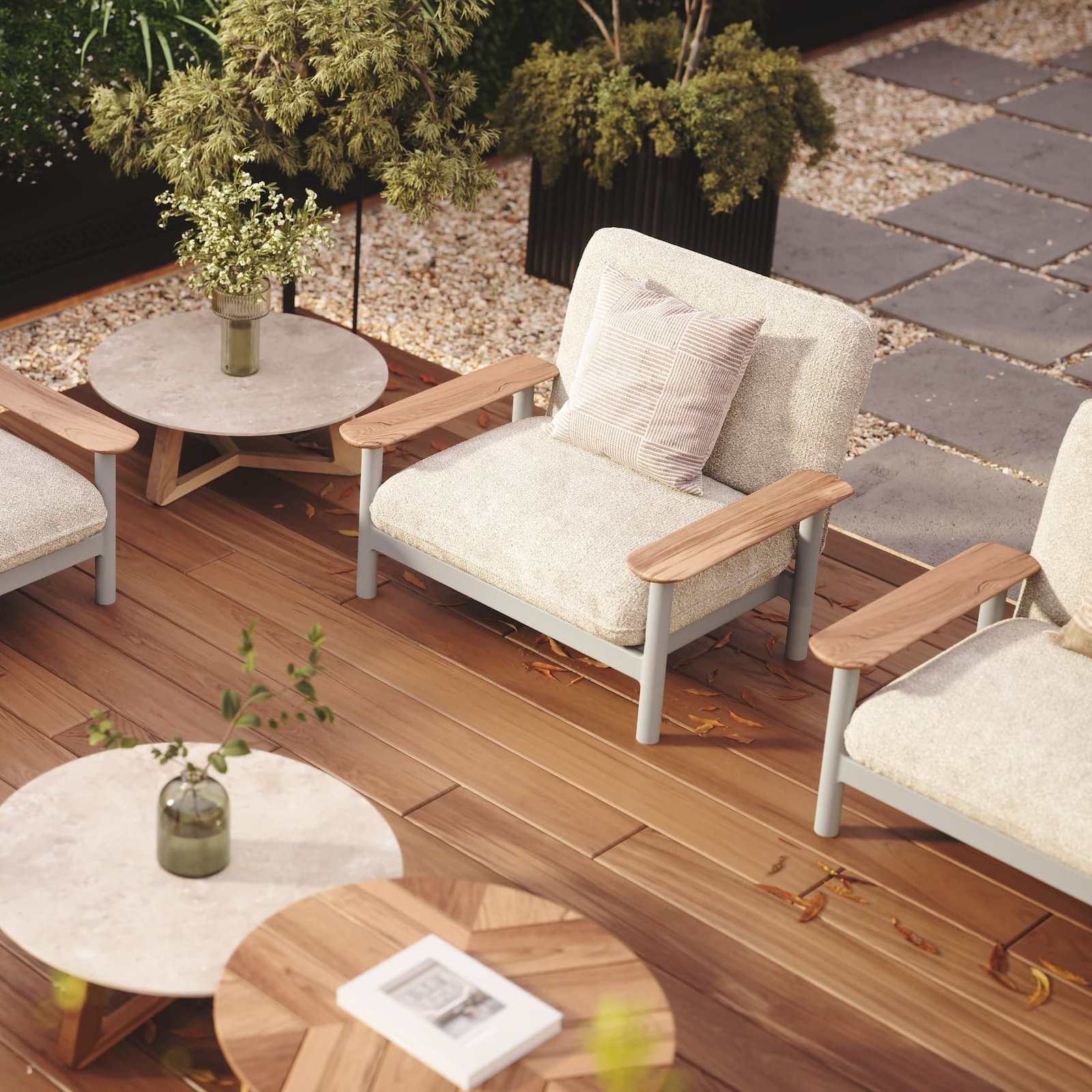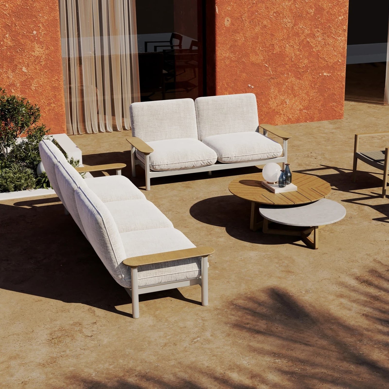 The Maddalena lounge set combines modern elegance with exceptional comfort, making it a perfect addition to any outdoor space. This versatile set consists of three elements: a one-seater (101x80x68 cm), a two-seater (181x80x68 cm), and a three-seater (261x80x68 cm). Each piece is available in two variations in full teak or with an aluminum base and teak armrests. For added flexibility, the elements of the Maddalena lounge set can also be sold separately, allowing you to create a customized setup that fits your outdoor space perfectly.
