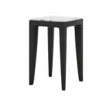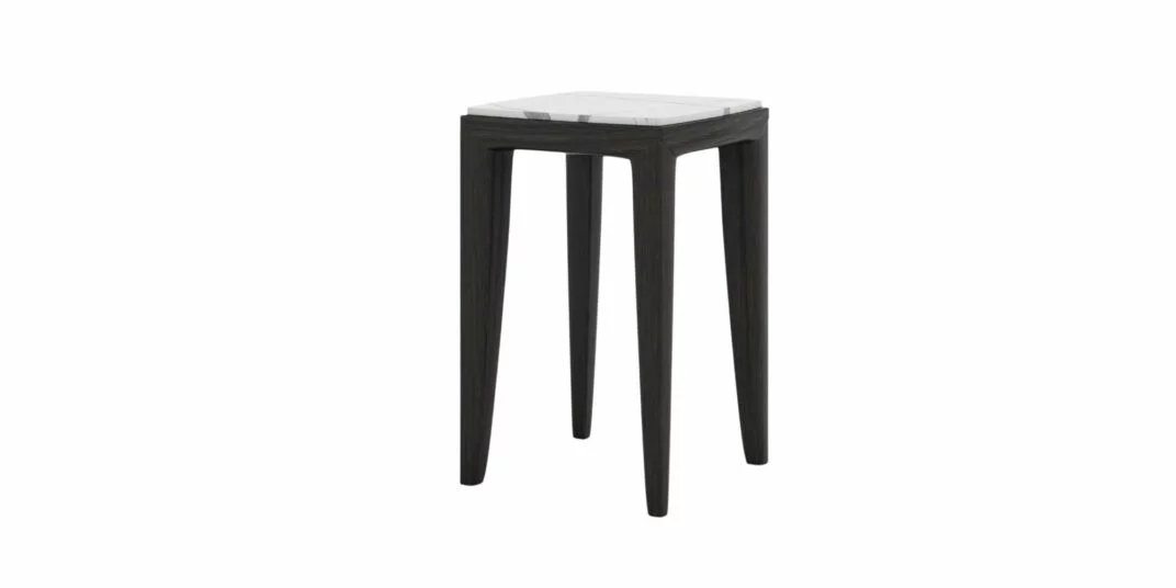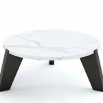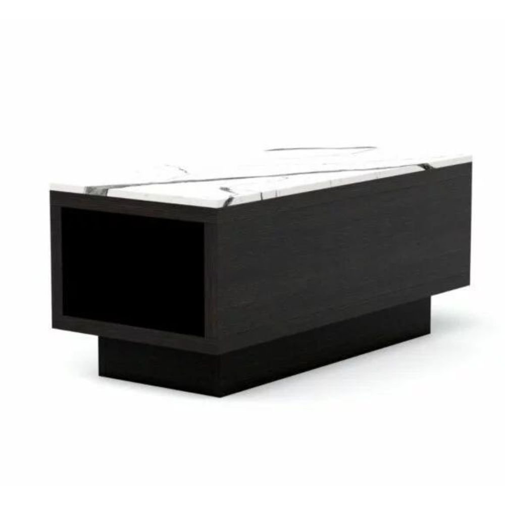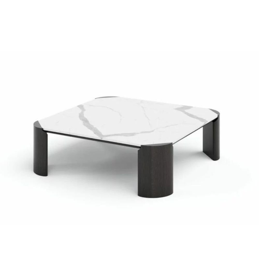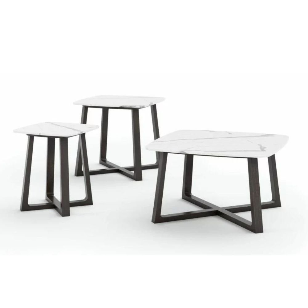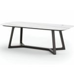 Coco Wolf furniture combines modern design with timeless elegance. The architectural components create a unique angular look, complemented by the refined porcelain tabletops.