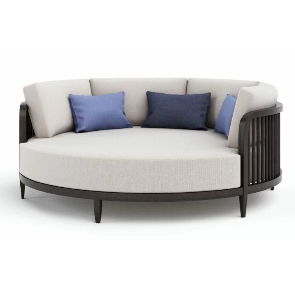 The perfect pairing of craftsmanship and design, the Largo collection is set to elevate any luxury outdoor space. Organic silhouettes evoke the glamour of a bygone age, while sleek, modern lines redefine luxury one circular lounger at a time. Expertly cast in natural iroko wood, it features a curvaceous silhouette and openwork frame. Note the lustrous spindles for that modern spin.