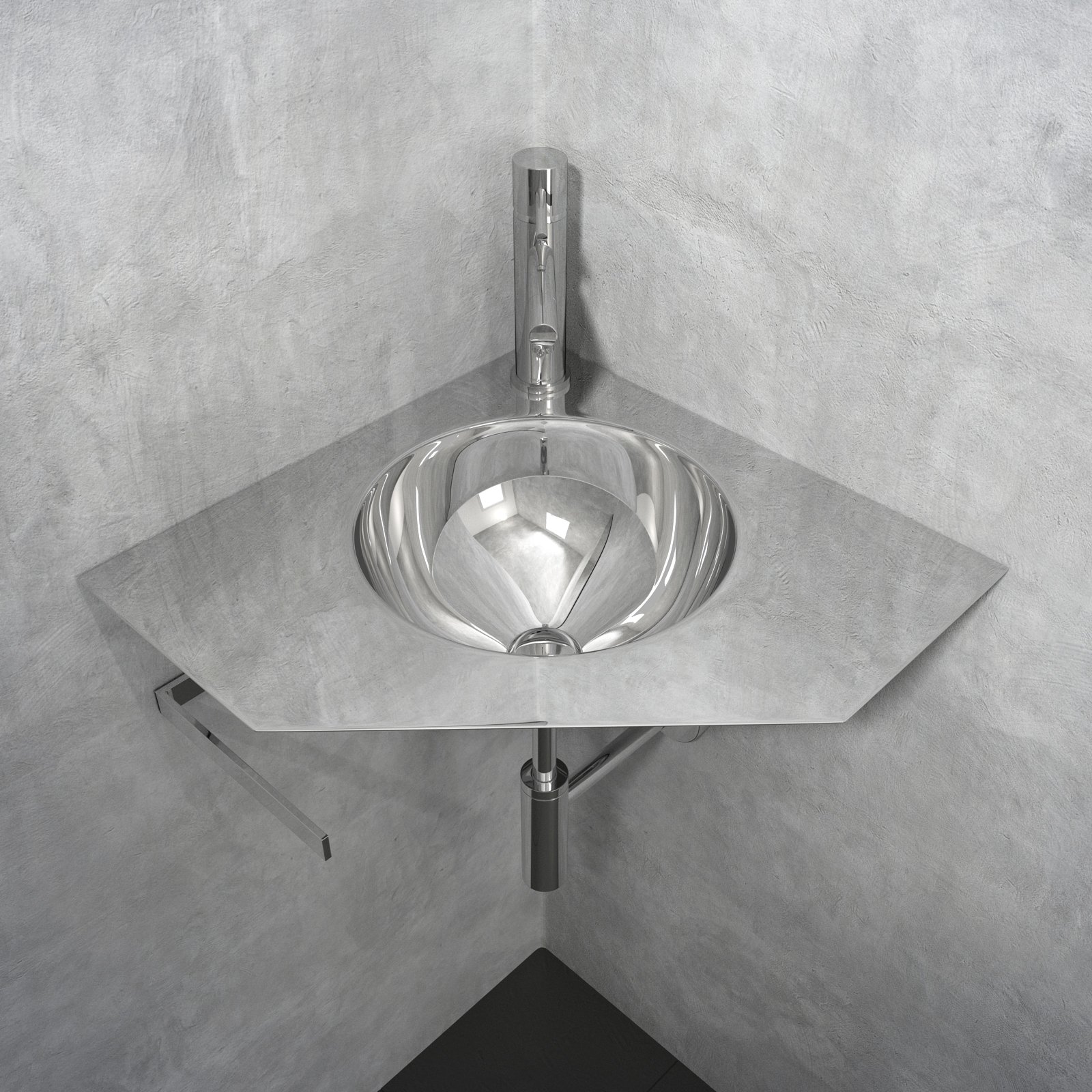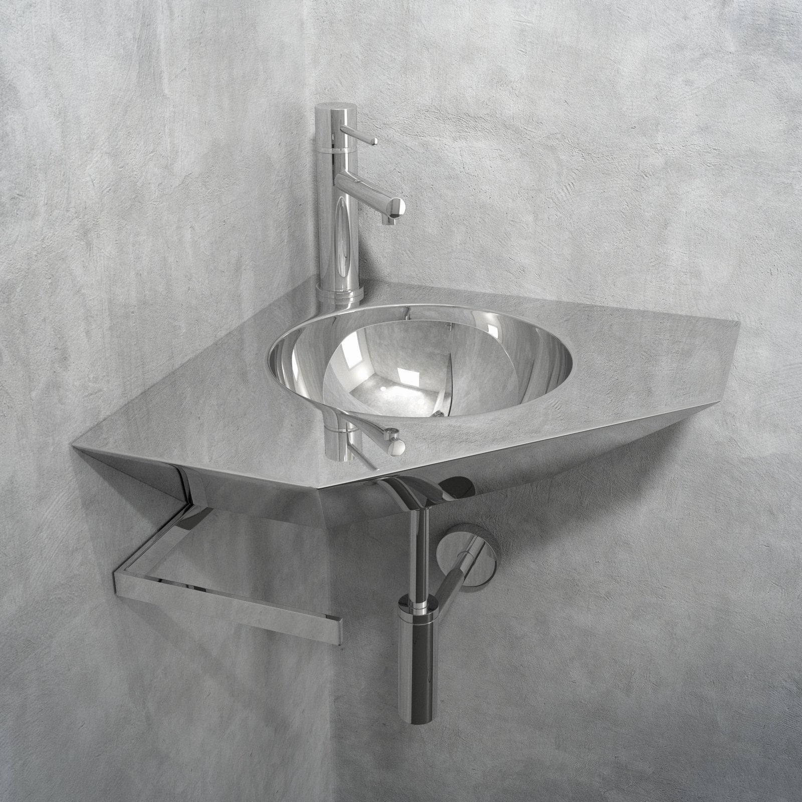 Orn is the suspended washbasin in pure AISI 304 stainless steel, perfect to furnish even the tiniest and narrowest bathrooms with style. Its corner structure allows to fully optimize small spaces.