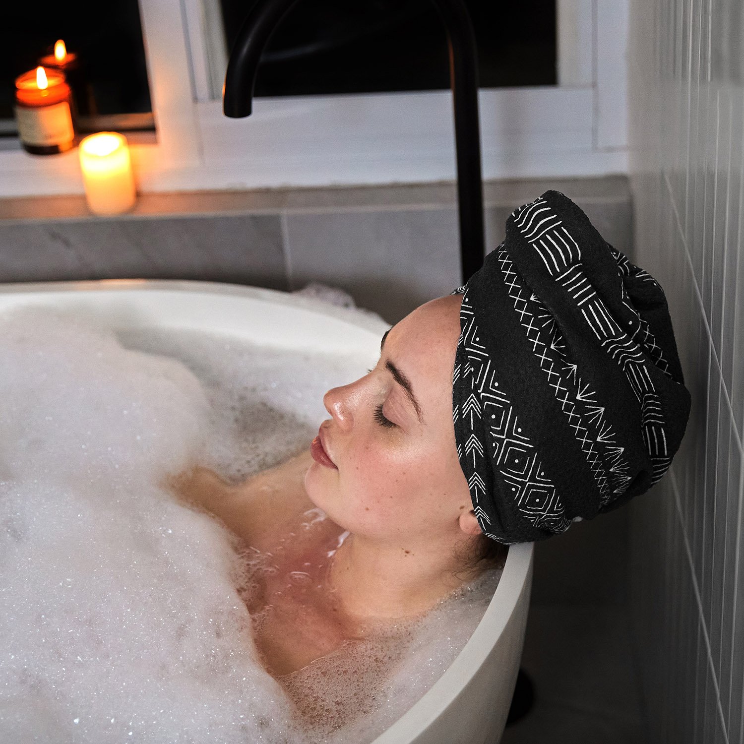 - Easy to use, simply COVER your wet hair and TWIST the wrap then SECURE into place with the elastic.