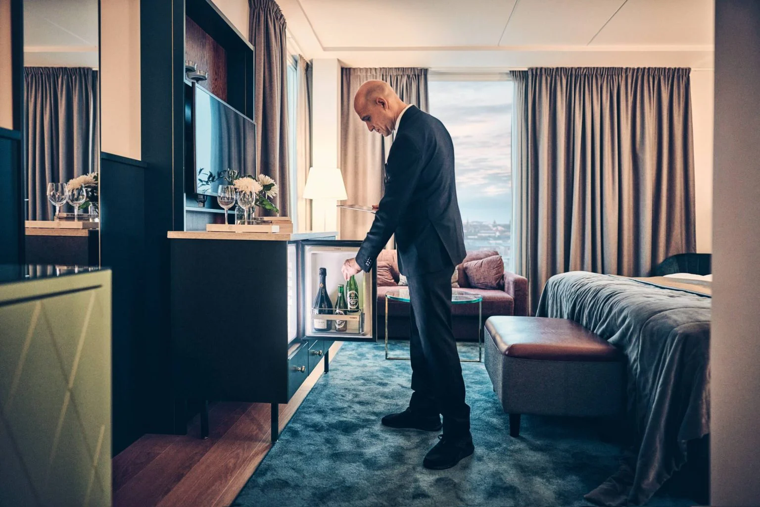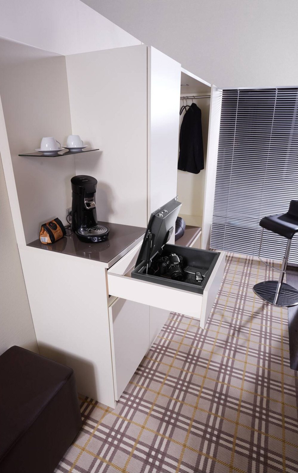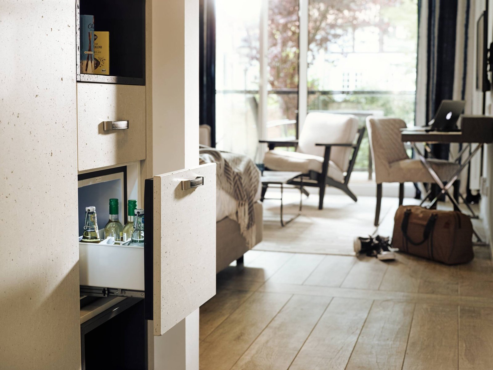 HiPro Alpha minibars combine powerful cooling comfort with outstanding energy efficiency. They satisfy the needs of discerning guests and reduces operating costs for hotels. Suitable for free-standing use or for integration into a piece of furniture with the quick-fix sliding hinge supplied as standard.