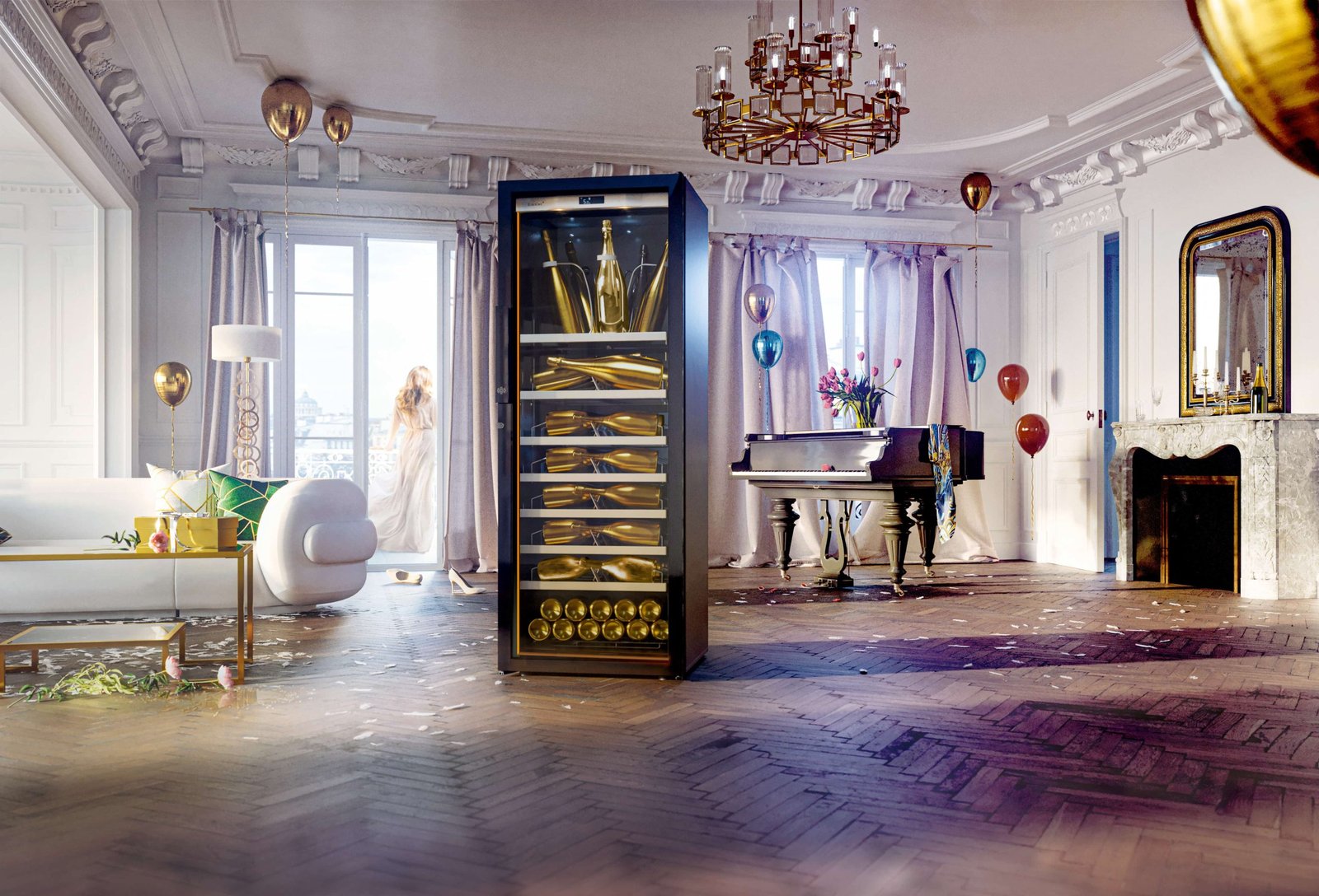 Our single-temperature cabinet comes in two sizes (small & large) and adjustable from 5 to 12°C. If you like your Champagne cold, the cabinet goes down to 5°C. For long term storage keep the temperature higher, at a maximum 12°C to store your collection. This cabinet is a strong tribute to the individuality of champagne houses and their tradition. Created to store all shapes and sizes of champagne bottles thanks to specially designed shelves it will accommodate your 75cl bottles and your magnums alike. Based on the ice bucket idea, this cabinet comes with a one-of-a-kind, magnificent shelf. This shelf features a turntable on top of which chrome-plated steel bottle supports hold up to 8 bottles (75cl) or 5 magnums. The EuroCave champagne cabinet appeals to all senses: the touch with the leather finishing touches, the sight thanks to the 360 lighting & the taste with the guarantee of a perfect tasting temperature. Devil is in the details and EuroCave sure made them glamourous with custom-made shimmering leather panelling. The leather covers the bottle holders, for a gentle contact with the glass. The cabinet brightens the room in which it is put and complements any decor with amber, blue, or red lighting. Our Champagne cabinet is an extravaganza-infused call to drinking and socialising. Find the Champagne collection on our website.