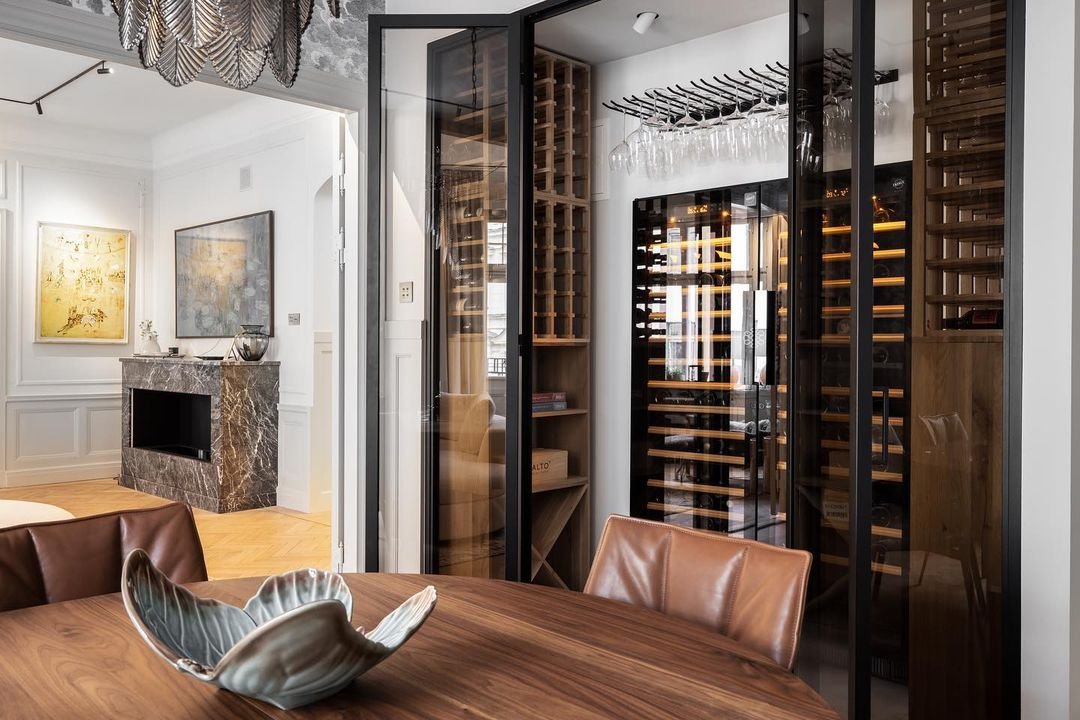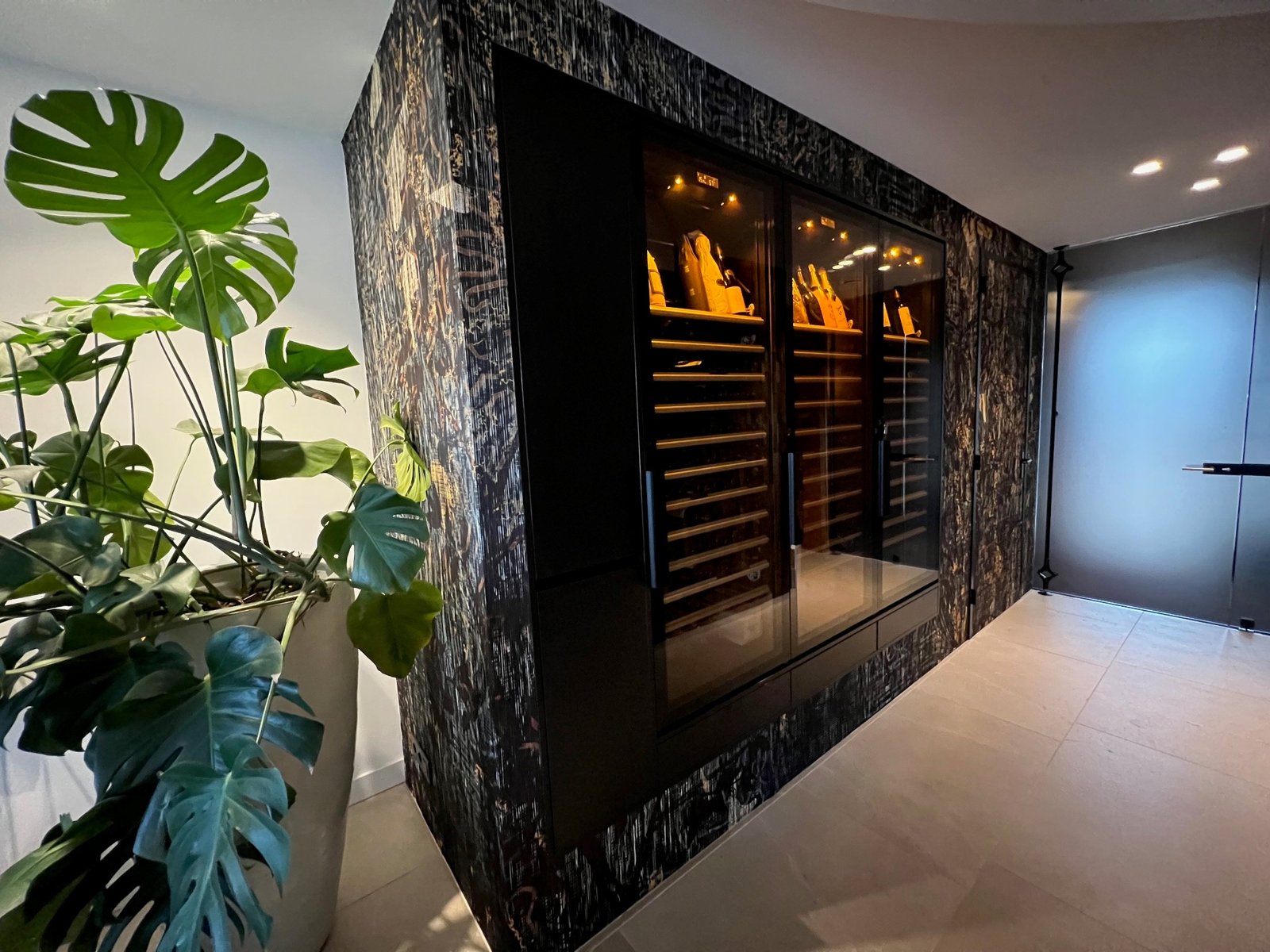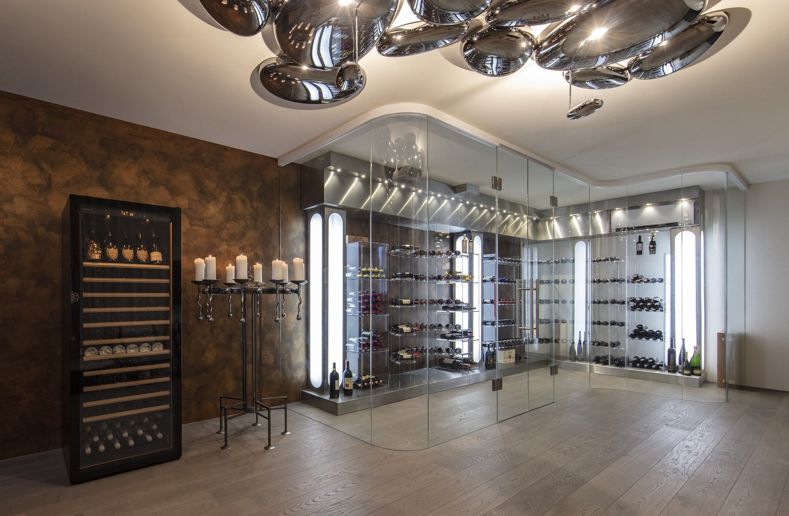 Our hardwood fronted shelves are either fixed to store and arrange the greatest number of bottles possible, or sliding to ease individual access to each bottle.