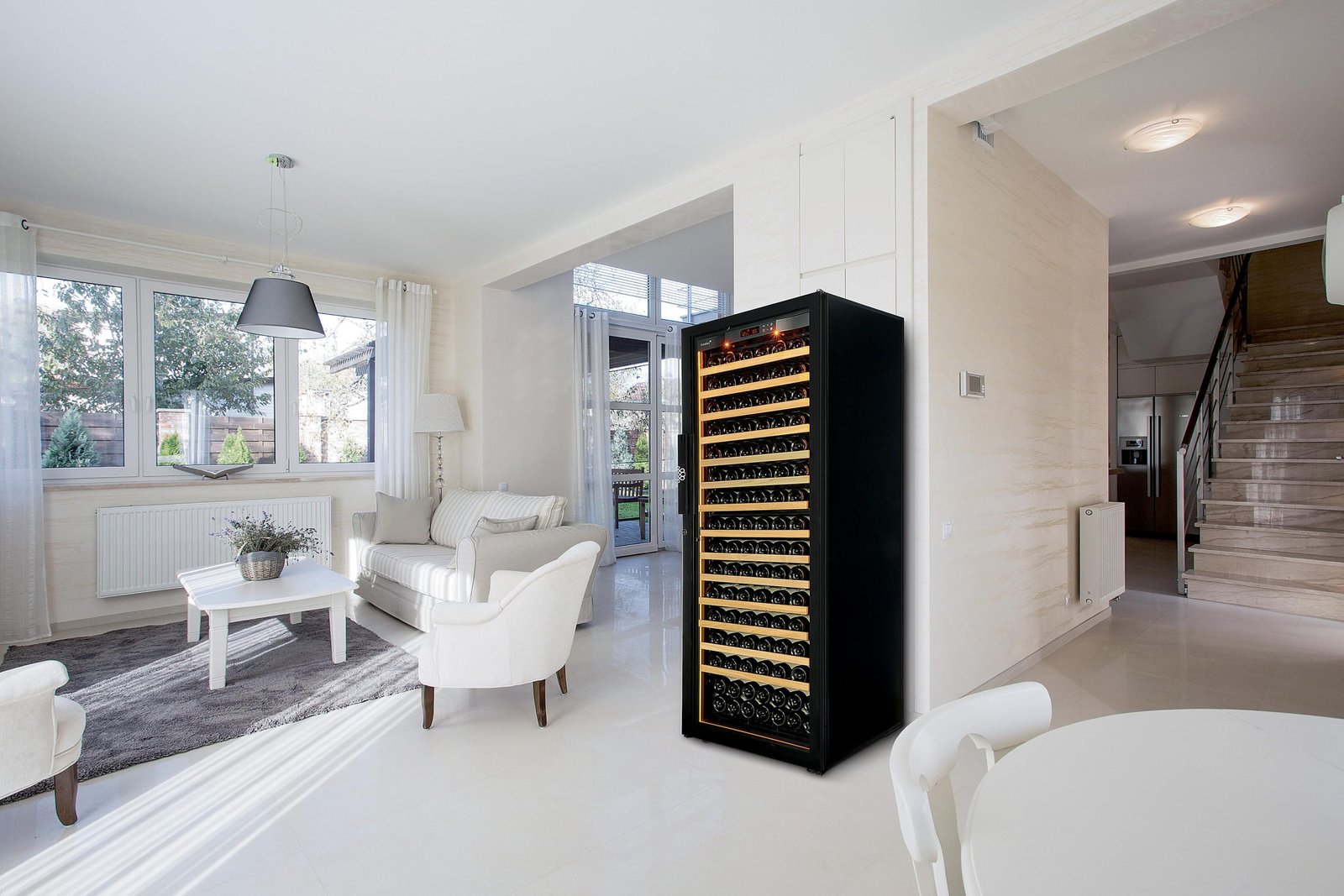 Your wines are matured in the best possible conditions while the amber halo lighting sheds a warm light on your finest bottles.