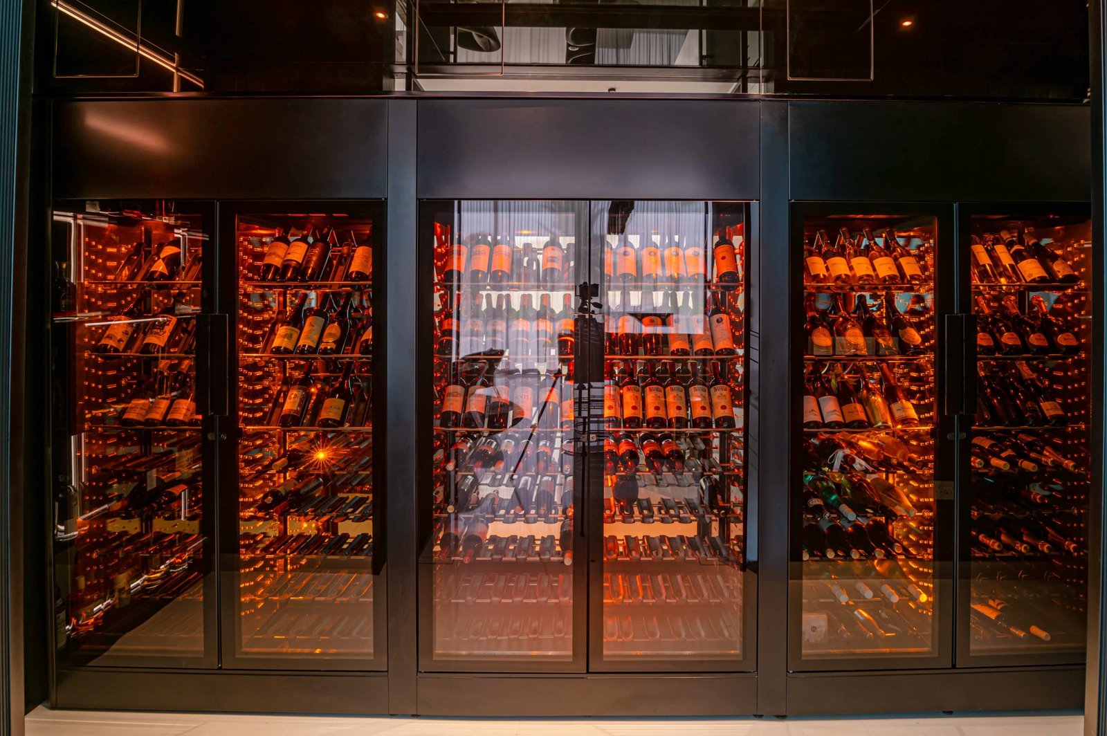 The LEDs installed along the walls diffuse amber lighting to tastefully display your best labels without compromising the wine’s quality.