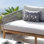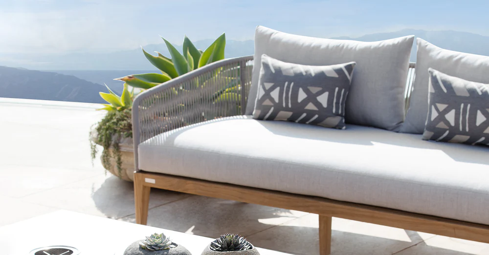 A transitional collection pairing clean lines with practical design. A nod to the Australian surf town of Avalon Beach, this brother collection to Hamilton features tapered legs, sculptural contours and double-layered rope accents on a handcrafted teak base for surfside relaxation anywhere.