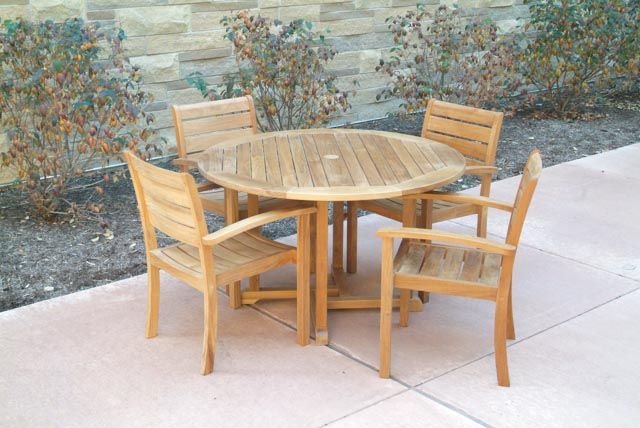 Designed for larger outdoor dining spaces, this spacious round table provides ample surface area for entertaining. Built with durable teak and classic styling, it offers long lasting performance and refined outdoor appeal.