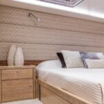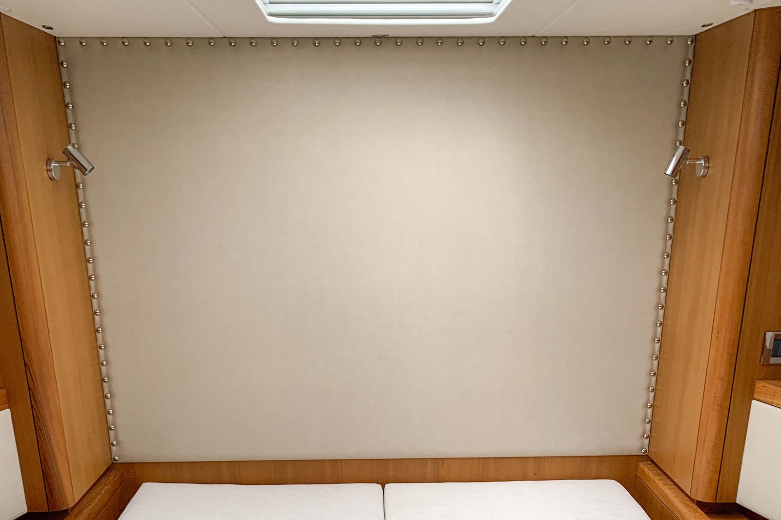 Each headboard and covered bulkhead panel is crafted using high quality marine fabrics chosen for both beauty and durability in a yacht environment. The upholstery adds texture and warmth while creating a cohesive and inviting atmosphere throughout your interior. Precision construction ensures a perfect fit to your vessels dimensions and enhances acoustic comfort and visual appeal.