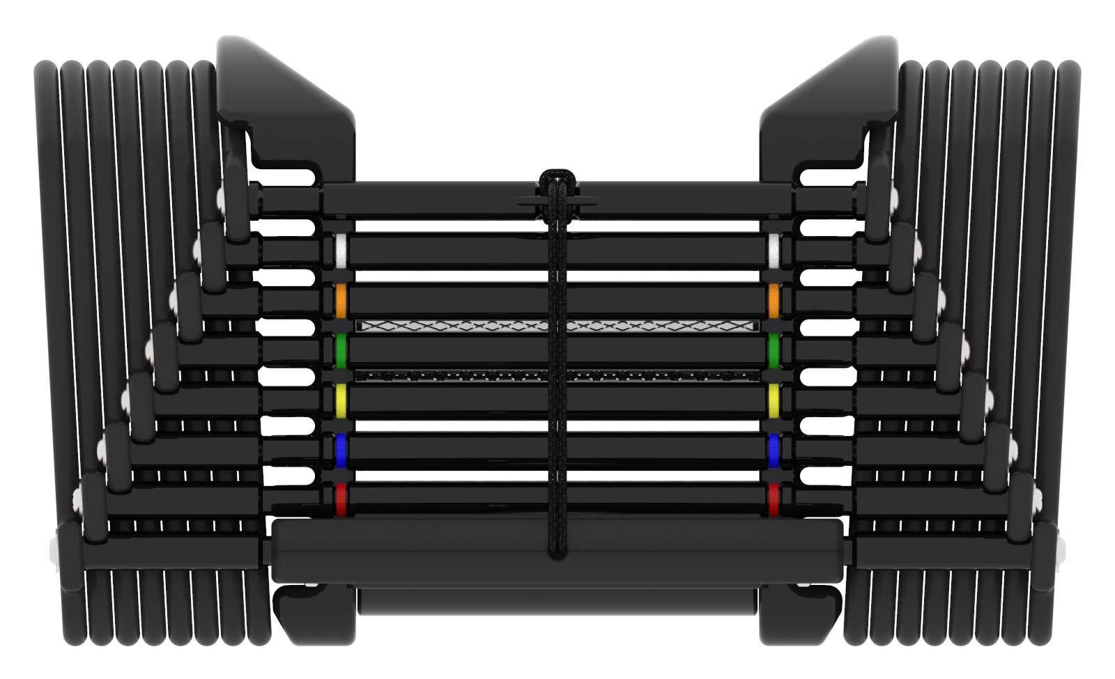• Color band indicators on the rail correspond to weight chart on handle for reference.