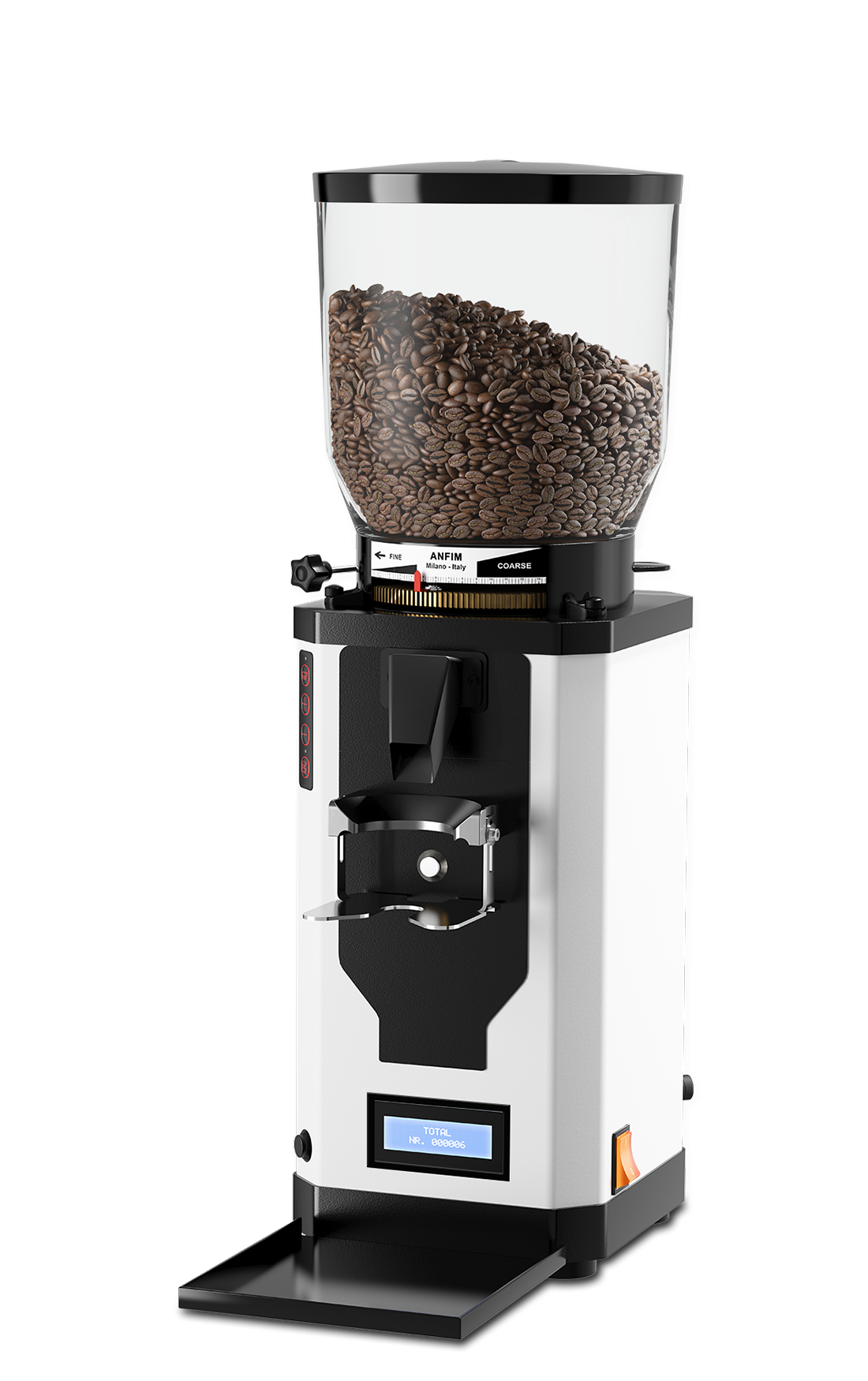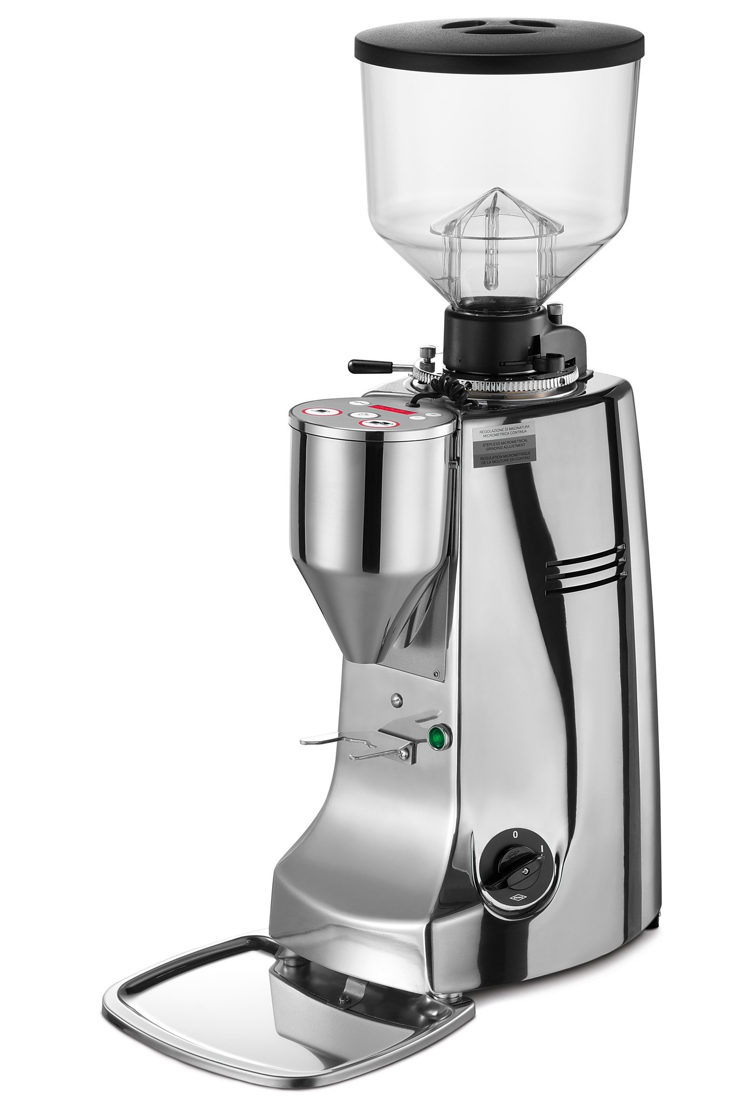 Adding to the impressive accuracy featured in this espresso grinder is Mahlkonig’s Disc Distance Detection system, which calculates the physical distance between the burrs down to 0.1 millimeter. Once you’ve dialed in you can save your grind fineness by this measurement, making it simple to monitor how your grind setting may float slightly throughout service and giving you an incredibly accurate way to get back to exactly where you found that delectable extraction. Using the fine-threaded stepless adjustment collar in concert with the new DDD technology makes staying dialed-in easier than ever.