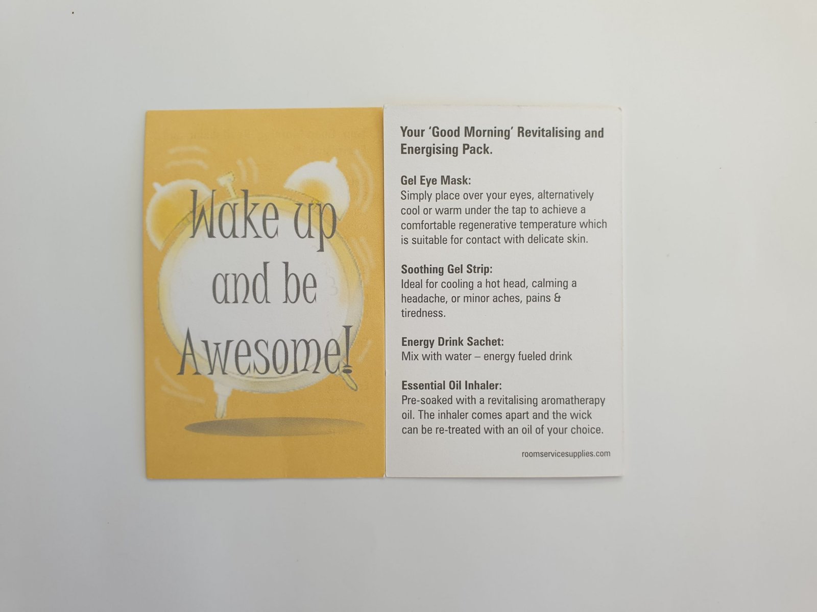 The Good Morning Collection is perfect for the morning after the night before! A great selection of items to get a guest ready to face the day. Revive for an early meeting, fix a sore head, combat lack of sleep & generally help them to feel better.