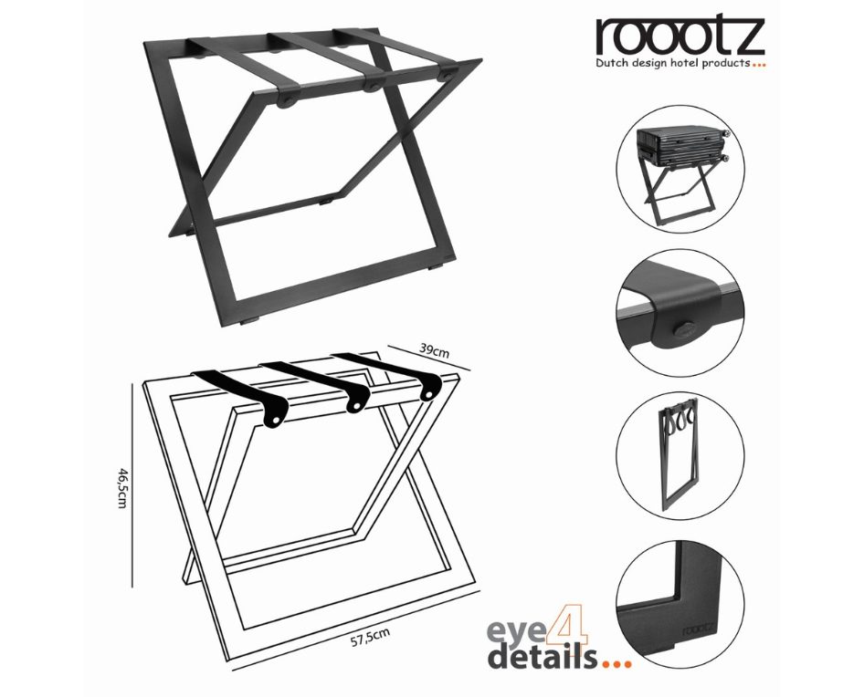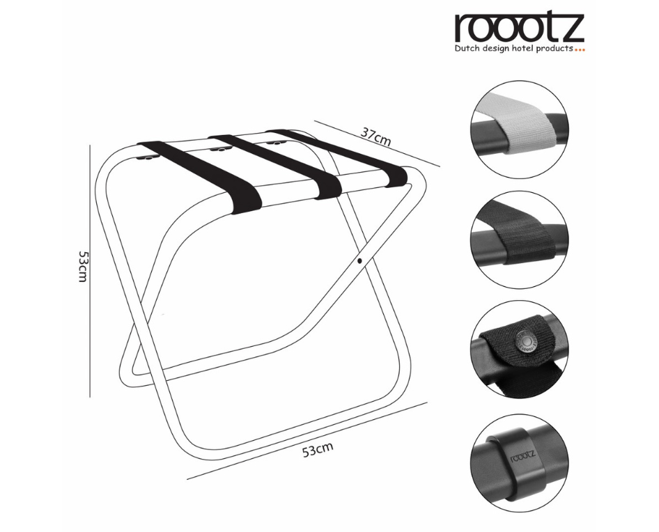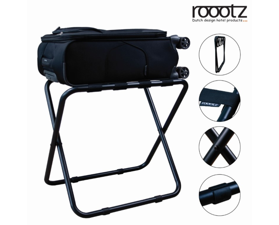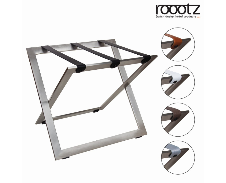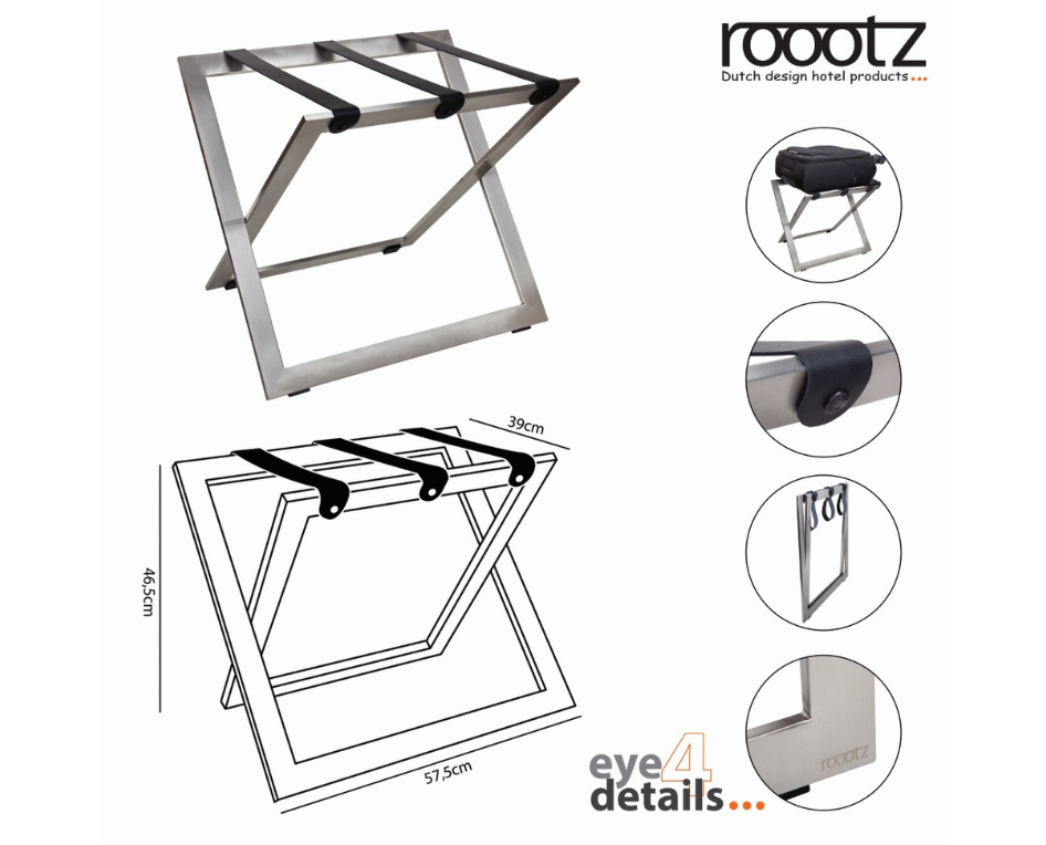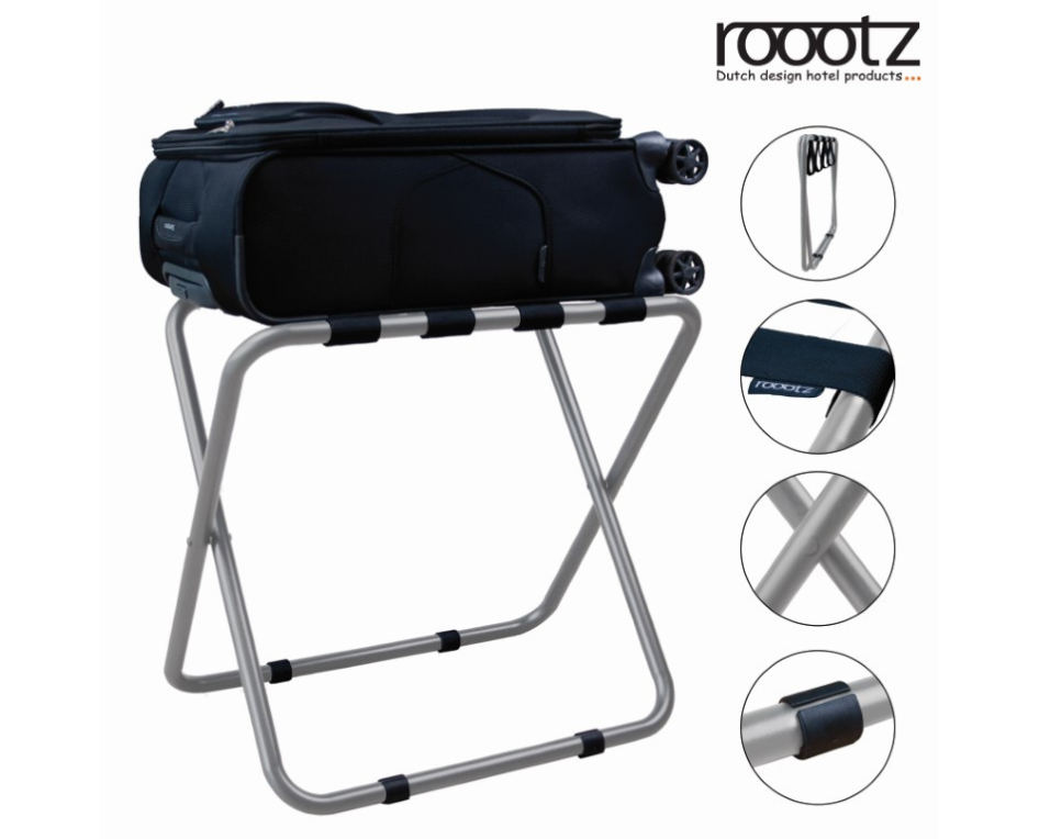 Features of the roootz compact luggage rack in Stainless Steel: