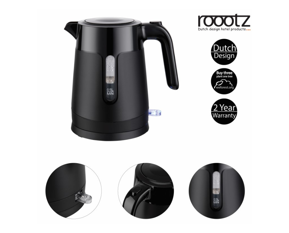 The Roootz HEAT Superyacht Kettle 1L in BLACK Polypropylene