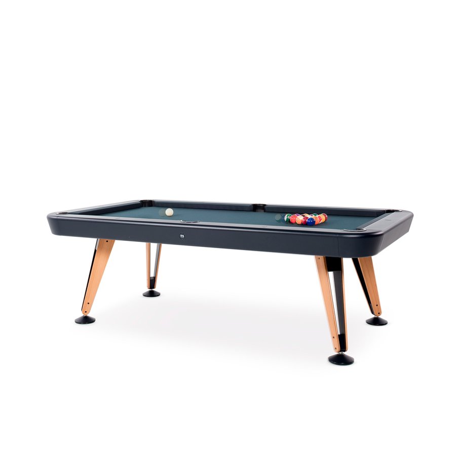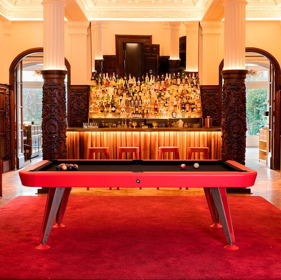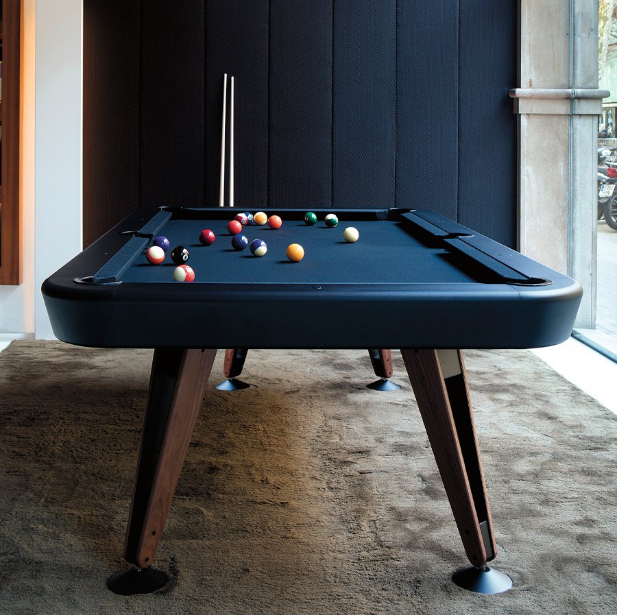 Just as a diagonal line crosses a space from end to end, the Diagonal pool table imbues any room or outdoor setting with design, elegance and playful attitude. Its beauty emerges from its exquisite simplicity, the authenticity of its design and its blend of materials and colours. From sober black to bright white, striking red, subtle elegance of green or deep blue. Appeal for a game of precision and perfection.