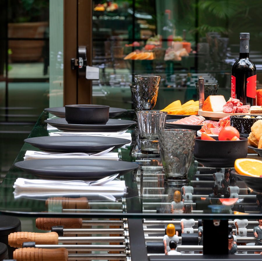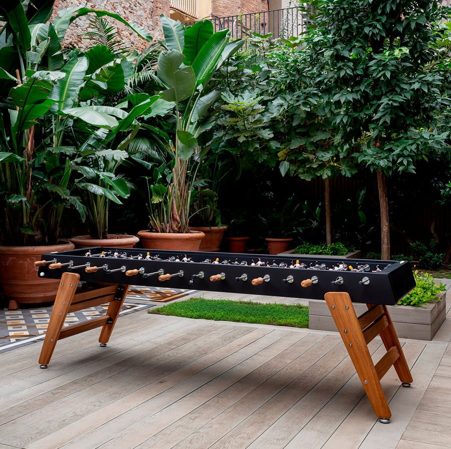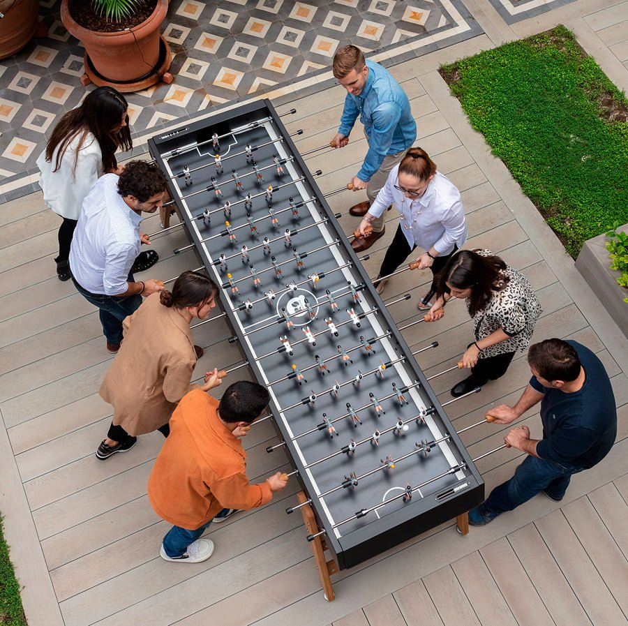 Go big. Take it to the fullest. The RS Max football table shows that although two is company, three is not a crowd. And even eight is the perfect number to exploit the potential and personality of this football table. The RS Max is the long version of the RS3 Wood. We’ve resized it to double the fun, accommodating eight players instead of four, making it the ideal game for community spaces and group settings. More players. More laughter. More goals. More excitement.