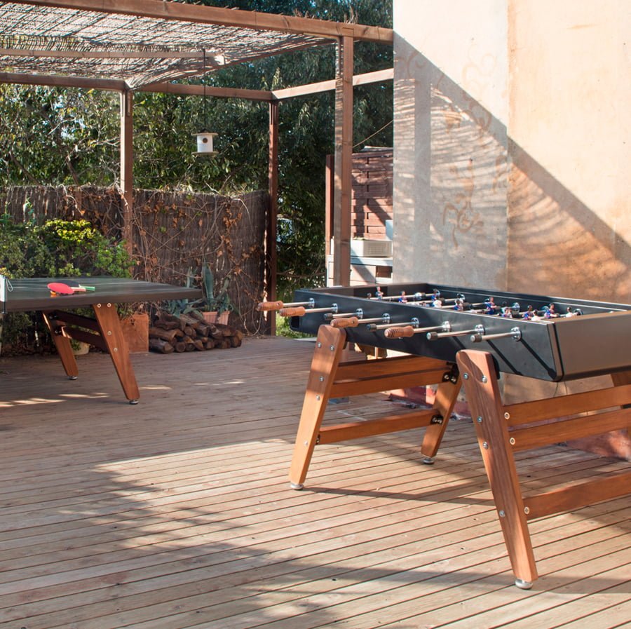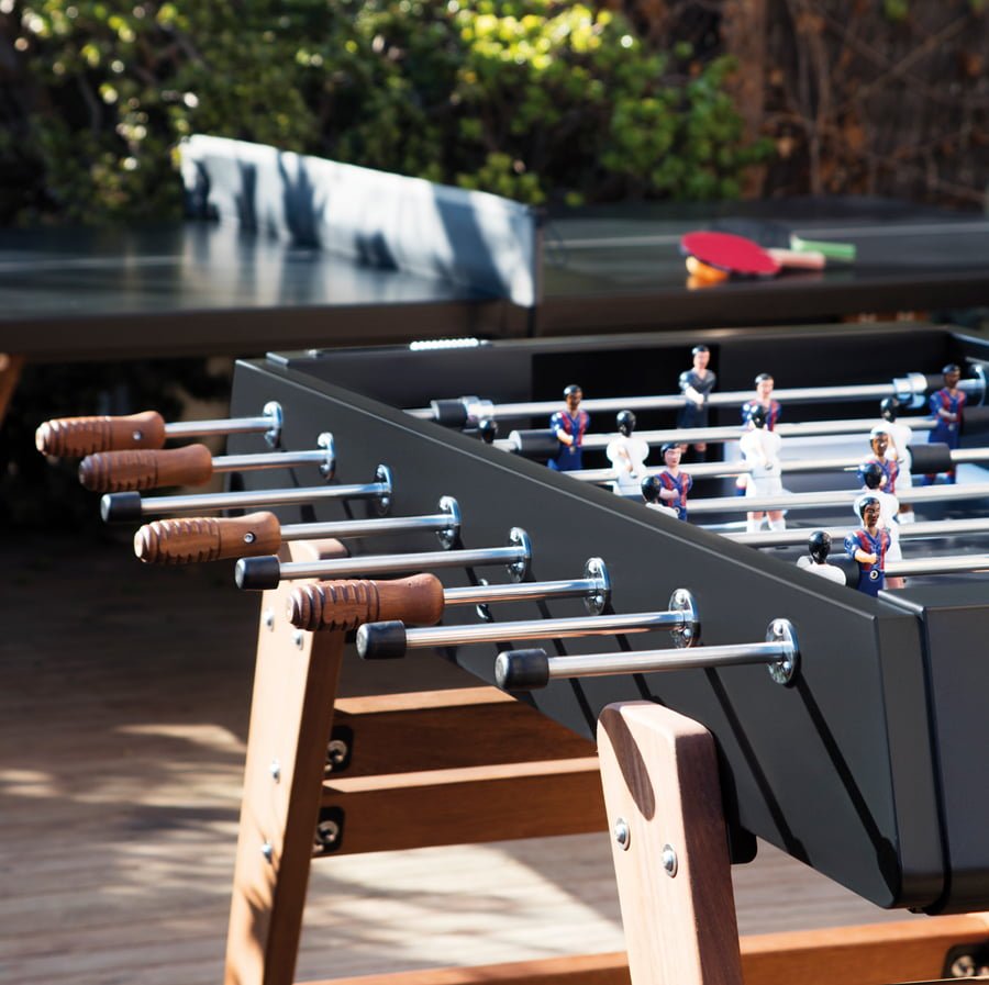 The RS3 Wood is the natural progression of our determination to push the boundaries. We’ve incorporated wood in our football tables and the outcome is a warm and friendly, more contemporary design. The secret lies in the mix, in achieving the balance between the elements so that each one gives its best. We do not choose just any wood. The choice is iroko, a wood suitable for outdoors, that like metal, it’s extremely durable and hardwearing, an essential requirement in our range of football tables. The essence remains intact, so you can enjoy the game without having to compromise on design.