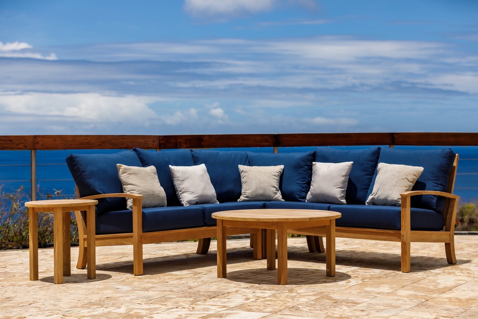 An elegant deep seating customizable sectional set designed to integrate seamlessly into modular or conversational seating arrangements. Built with solid teak framing and generous all weather cushions, this piece delivers flexible layout options while maintaining comfort and refined outdoor appeal. With the ability to customize your personal seating arrangement.