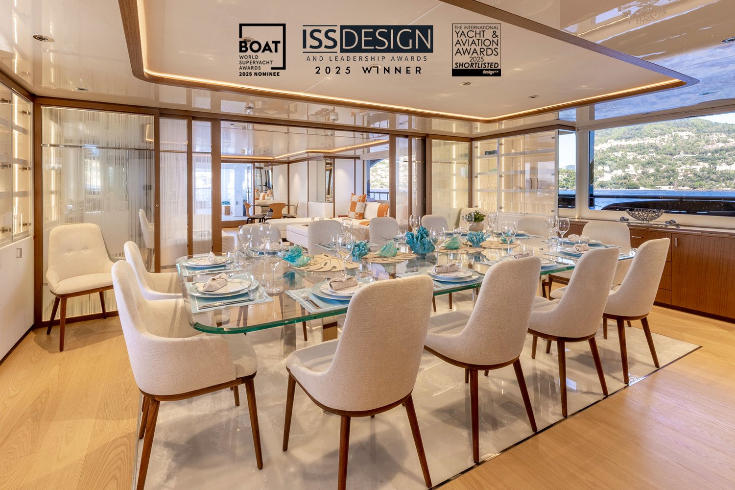 Solafide is a 52-meter motor yacht built by Benetti. Our team managed the entire interior refit process, from design to execution, including on-site supervision. We completely transformed the yacht using beautiful materials like eucalyptus wood, white leather, decorative glass, and white onyx. Our goal was to create a modern and elegant design while still respecting the yacht’s original build year of 1994. We optimized space by redesigning internal bulkheads and custom-designed sofas and furnishings to complement the overall aesthetic. We also furnished the outdoor areas with custom cushions and loose furniture, enhancing flexibility and comfort. The project was widely recognised, being shortlisted as Best Refit at the Boat International Design & Innovation Awards and Design et al Awards, and winning the ISS Awards 2025 for Best Refit.