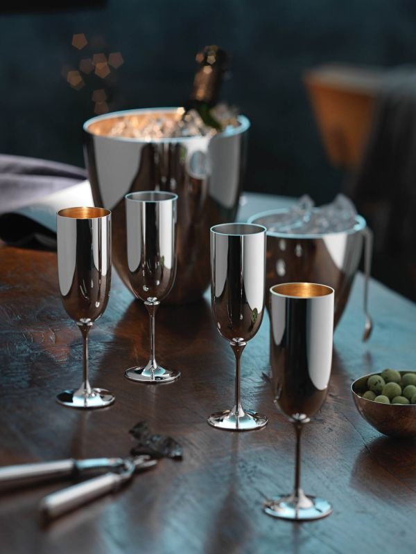 The ‘Dante‘ Bar Collection offers a perfectly smooth surface. Every item is silver plated and there is the option of gold gilding inside the vessels, adding an extra touch of luxury.